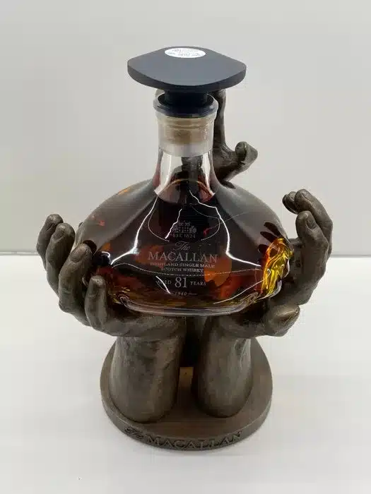 This is an exclusive, one-off special edition of The Macallan The Reach 81 Years Old – the oldest whiskey in the world. This exceptional bottle was distilled in 1940 and bottled from a single sherry-aged oak barrel. It is housed in a display case lined in luxurious red leather – instead of the traditional cream leather that the original whiskey comes with.
