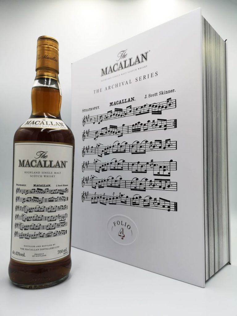Macallan Folio 4 features an advertisement including a strathspey composed by James Scott Skinner (1843-1927). The ad notes that Skinner, “The Strathspey King”, was moved to music by the lilting flavor and melting resonances of a tumbler of his favorite malt whisky – The Macallan.